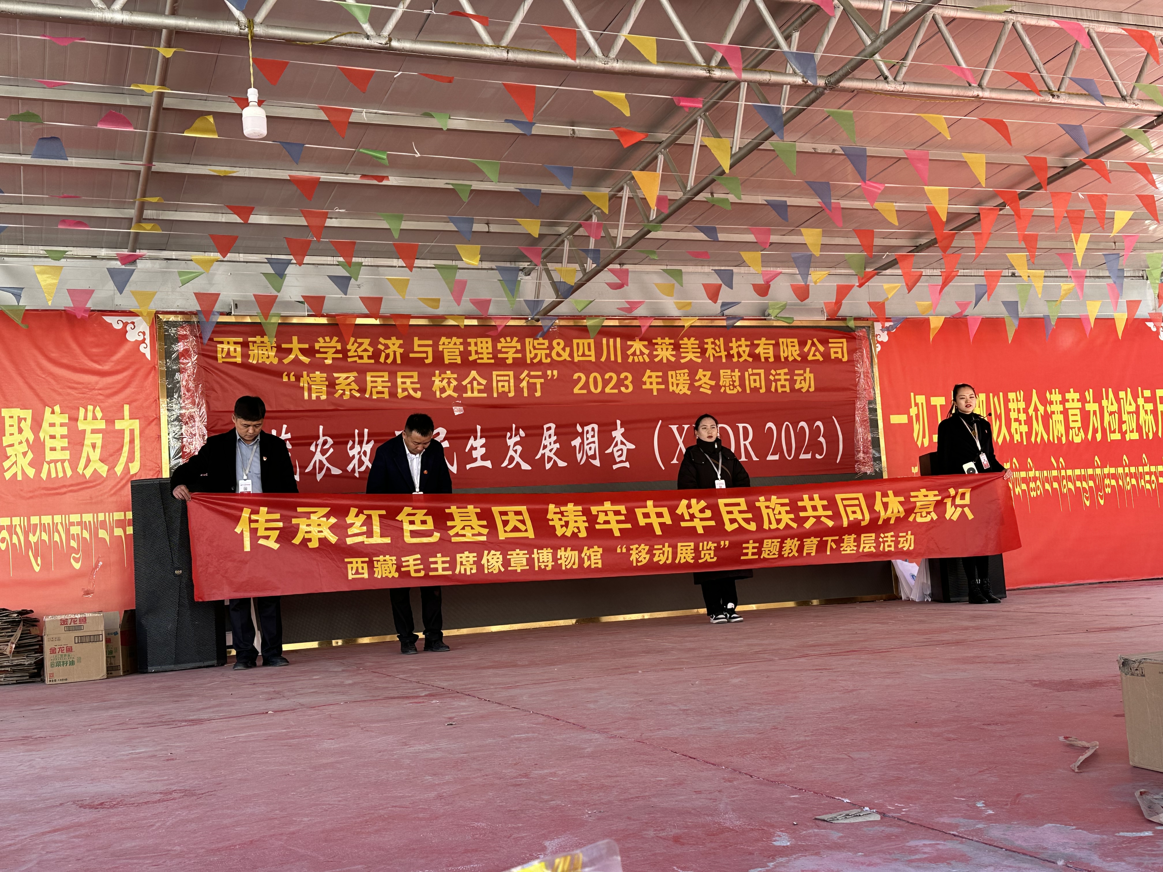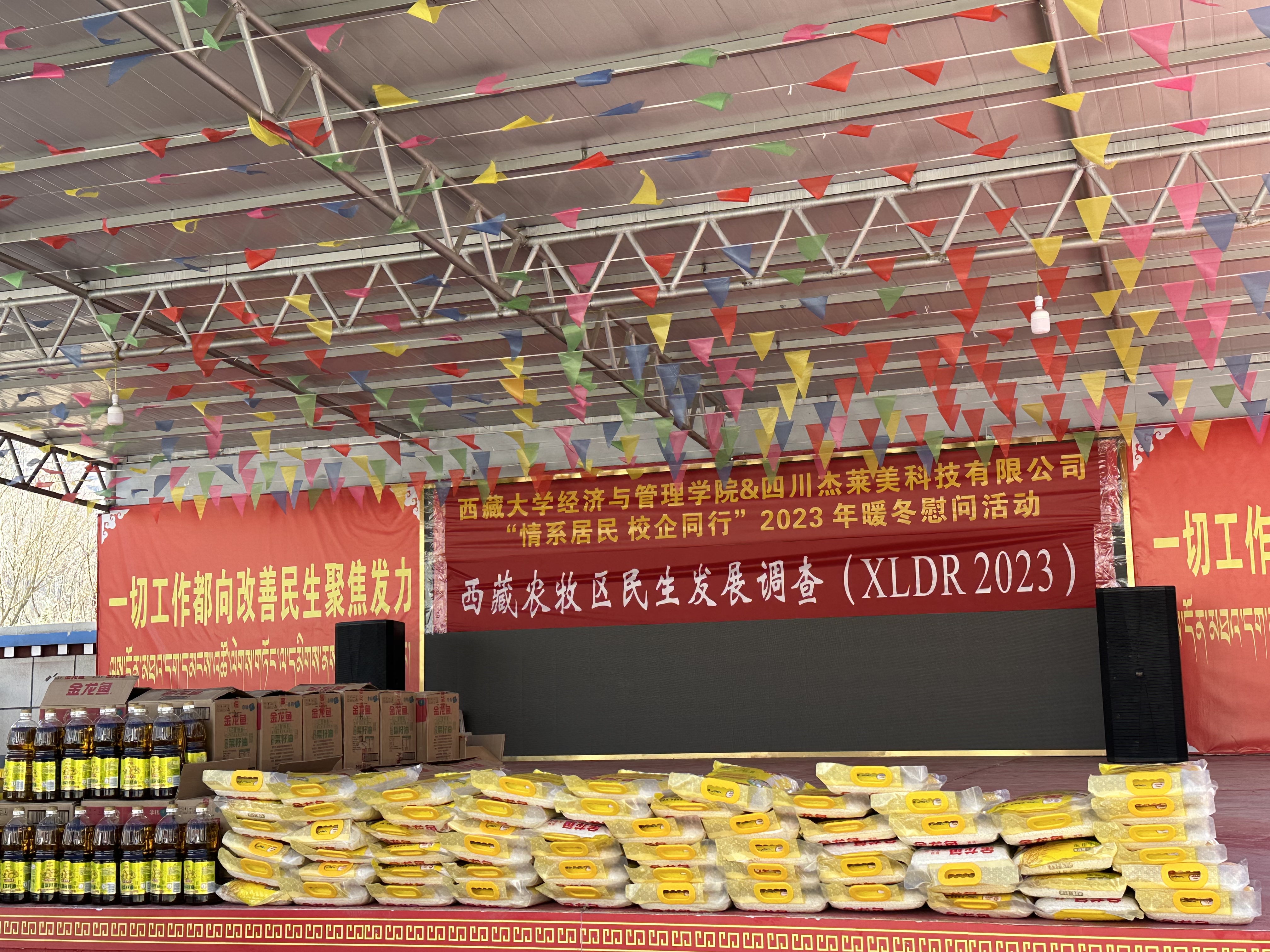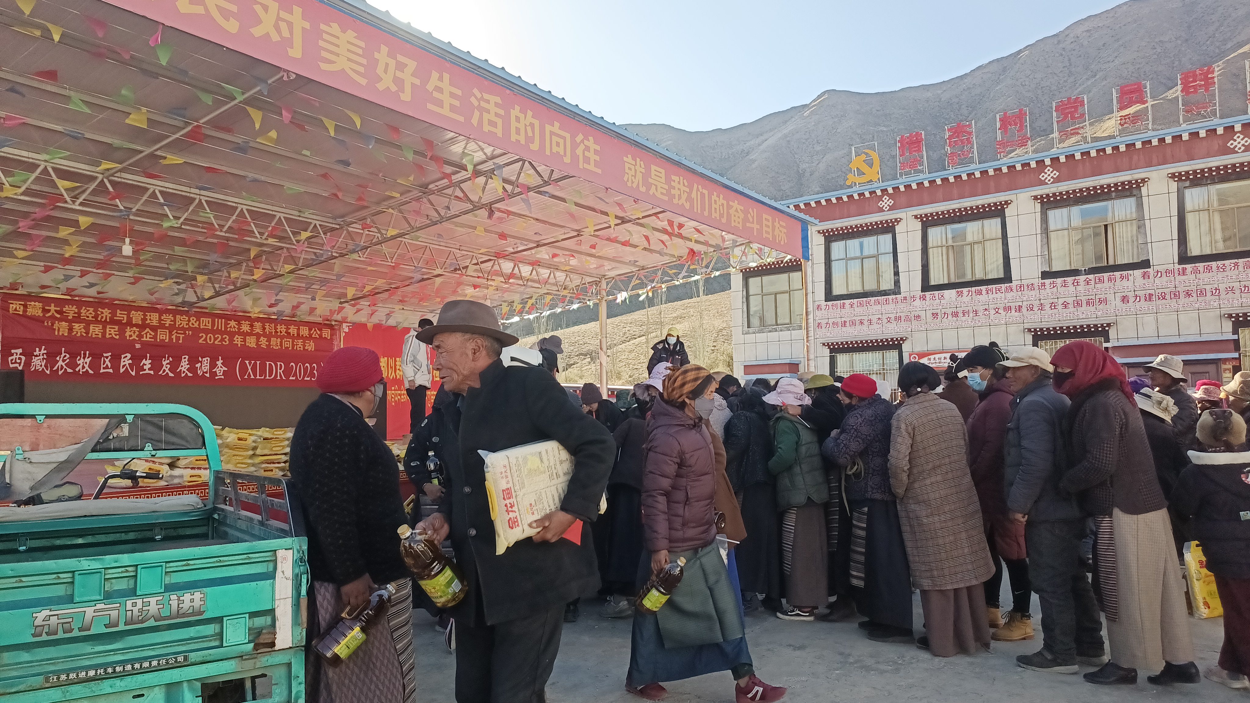 ??四川杰萊美科技有限公司與西藏大學經濟與管理學院在2023年11月25日共同發起了"情系居民 校企同行" 活動,旨在為西藏農牧區的居民帶去溫暖和關懷。活動以傳承紅色基因、鑄牢中華民族共同體意識為主旨,積極開展了一系列慰問和教育活動。