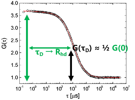 在共聚焦顯微成像光路上實現 從溶液樣品或單個活細胞內分離出約1飛升的熒光激發和信號探測體積 | 熒光標記分子自由擴散通過探測體積 SPAD探測器以約90ns分辨率捕獲光子時序信號 | 對光子時序信號進行自相關/交相關分析 得到隨相關時間T衰減的自/交相關曲線解析分子相互作用 |
